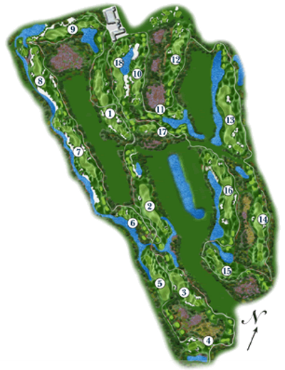 A truly wonderful finishing hole. The best route off the tee is to the left-center of the fairway, as the ball will move to the right toward the lake. The massive beach bunker on the right will require many players to pitch out sideways or challenge the carry over the lake. The green is protected by a lake right, a bunker on the front right and behind and a large pitching area to the left that calls for a deft touch for players hoping to get up and down. The green itself has seen the middle ridge and slope toward the pond reduced, but remains one of the fastest on the course.